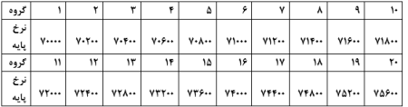 جدول مزد سوات در گروه های بیست گانه در سال ۱۲۰۳ به شرح ذیل است: