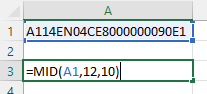 با تابع MID ما از کارکتر 12 ام به تعداد 10 کاراکتر جدا و استخراج میکنیم چون طبق پروسه و دستورالعمل سازمان مالیاتی 6 کارکتر اول برای شناسه یکتا ، 5 کاراکتر بعدی برای تاریخ و 10 کارکتر بعدی برای شماره صورتحساب است.